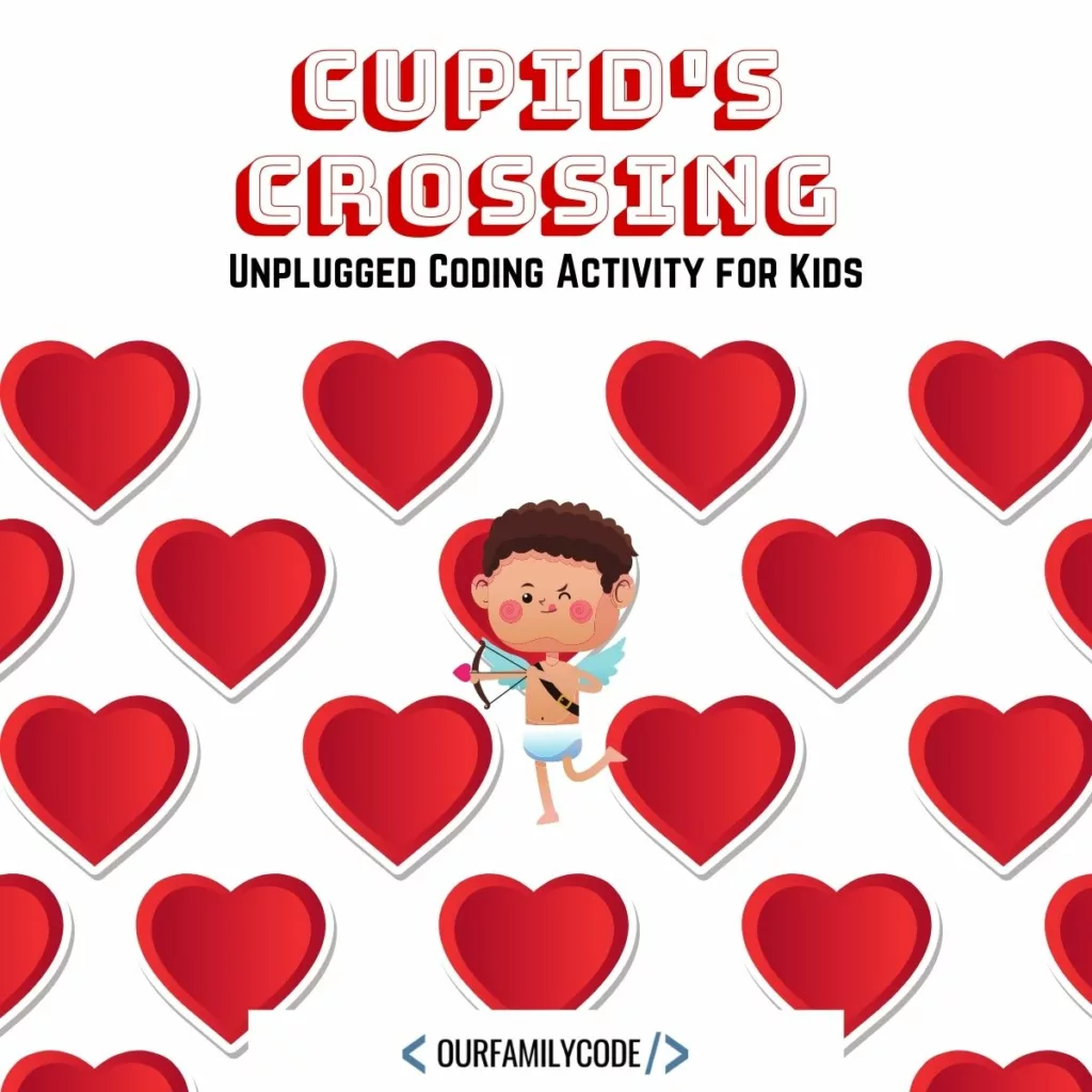 You can also pair this unplugged coding activity with Let’s Go Code to build the maze, code out our steps, and take turns being Cupid!